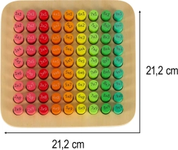 Denne store træ-gangetabel er et ideelt hjælpemiddel til skolebørn fra 7 år. Takket være de overskuelige klodser med opgaver og resultater lærer børn multiplikation visuelt og legende. Det farverige design øger overblikket og gør det lettere at huske.