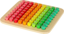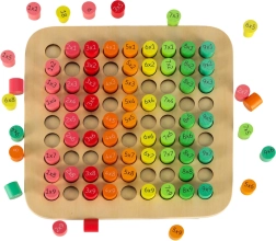 Oplev en sjov måde at lære gangetabellen på! Denne kvalitetstræ-læringstabel med farvede klodser hjælper børn hurtigt og nemt med at mestre grundlæggende matematik. På den ene side af klodsen er der et multiplikationseksempel, på den anden side det rigtige resultat. Legetøjet støtter koncentration, logisk tænkning og hukommelse og motiverer til læring takket være de livlige farver.