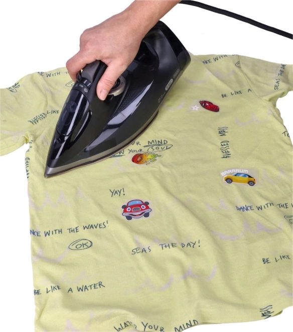 Placer motivet, dæk til og stryg. Hurtig personalisering af T-shirts, hoodies og tasker uden specialudstyr.