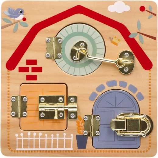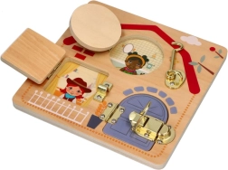 Tavlen tilbyder flere typer lukninger, som børn gradvist mestrer. Hver mekanisme giver nye udfordringer og træner fingerfærdighed og tålmodighed.