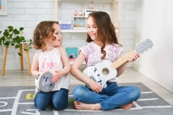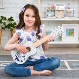 Med seks strenge og klassiske stemmemekanismer kan børn høre forskellen på toner og lære akkorder som på en rigtig guitar.
