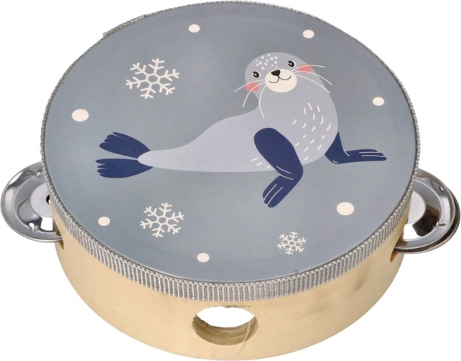 Giv børn glæden ved musik med en tamburin, der kombinerer naturtræ, metalplader og et legende sælprint. Den er let, nem at håndtere og ligger godt i en barnehånd. Velegnet til leg derhjemme, børnehaver og musikhold.