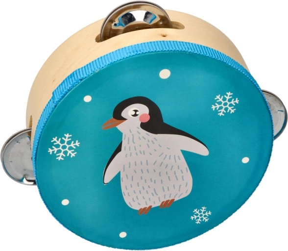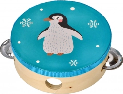 Denne farverige tamburin med en illustration af en pingvin er et glimrende valg til de første musikalske skridt. Takket være de kompakte dimensioner ligger den godt i børns hænder og understøtter koordination, rytme og auditiv perception. Den solide træramme og de kvalitets metalplader skaber en klar lyd, som børn elsker.