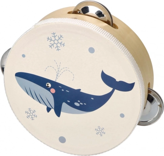 Denne børnetamburin med et muntert hvalmotiv er et fantastisk instrument til de første rytmiske eksperimenter. Trækrop, spændt membran og metalbjælder skaber en behagelig lyd, der motiverer børn til leg og musikalsk udforskning.