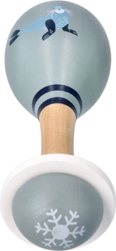 Den søde børnemaraca med illustration af en sæl vil glæde enhver lille musiker. Den er let, ligger behageligt i hånden og giver en rar, rytmisk lyd. Fremstillet af kvalitetstræ med glat overflade og børnesikre farver. Ideel til at udvikle rytme, hørelse og motorik allerede fra 5 måneder. Sikre farver, ergonomisk håndtag, udvikler musikalitet.