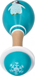 Denne træmaracas med et muntert pingvinmotiv er et ideelt første musikinstrument til de mindste. Takket være de kompakte mål 16 × 5 cm og det ergonomiske håndtag er den let at holde, rasler behageligt og motiverer børn til at udforske lyde.
