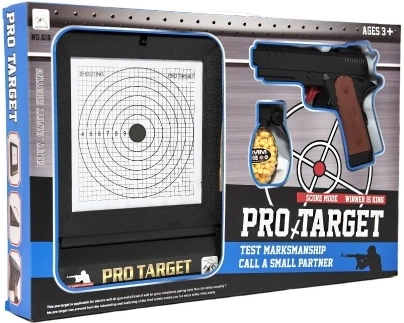 Den attraktive PRO-TARGET-emballage viser indholdet ved første øjekast – pistolen, målskiven og plads til ammunition, ideel som gave.