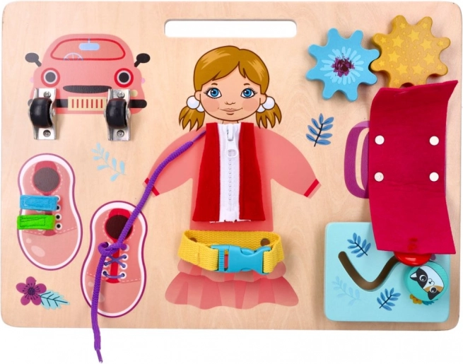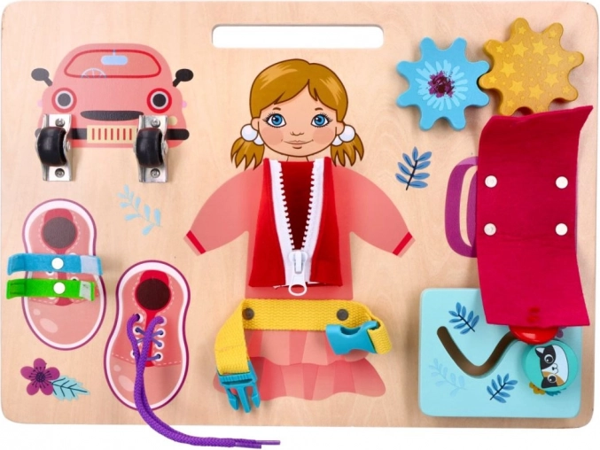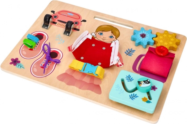 Opdag den sjove og lærende legetavle Anička, som udvikler børns finmotorik og logiske tænkning. Med elementer som en skydende kat og forskellige lukninger lærer børn gennem leg.