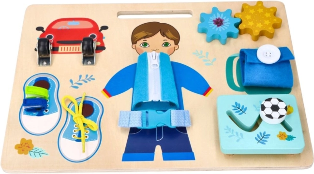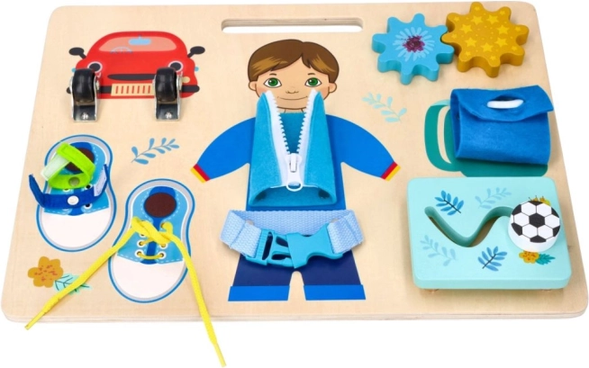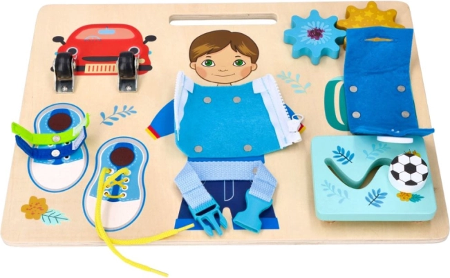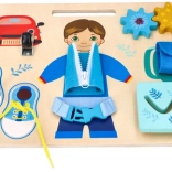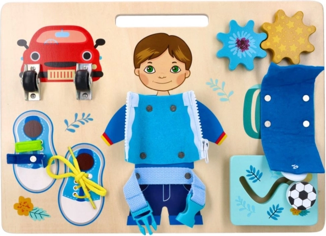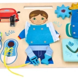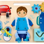 Lærer at snøre sko, lukke lynlåse og håndtere spænder – praktiske færdigheder i hverdagen.