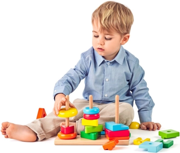 Legetøjet understøtter tidlig udvikling af barnets færdigheder: sortering efter form og farve, tælling af dele og de første principper for stabling. De holdbare materialer og glatte kanter er designet til daglig brug i hjemmet og i børnehaver.