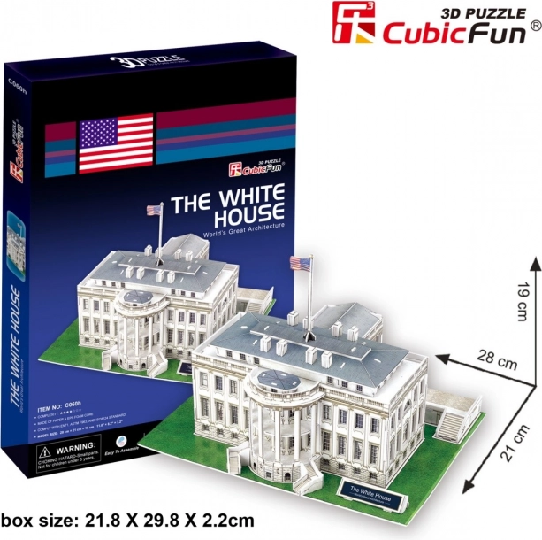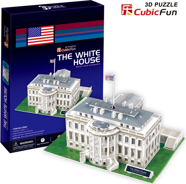Byg det ikoniske Det Hvide Hus som et realistisk 3D-puslespil fra CUBICFUN. 64 brikker af solidt skum med trykt laminat samles nemt uden lim og saks. Sværhedsgrad 4/7, byggetid 150–180 minutter. En fantastisk gave, lærerig leg og stilfuld dekoration.