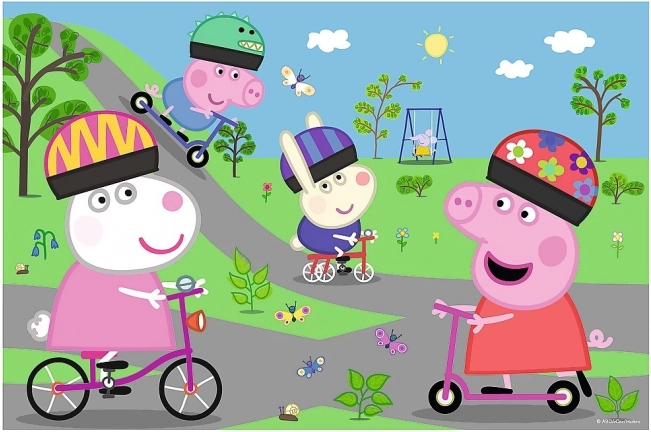 Oplev glæden ved at lægge puslespil med temaet “En aktiv dag med Peppa”. De store brikker er ideelle til mindre børn – de er nemme at holde, passer præcist sammen, og takket være det særlige kalandrerede papir med let glans er de behagelige at lægge under forskellige lysforhold.