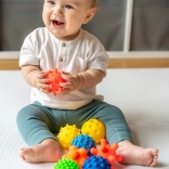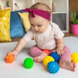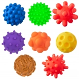Sæt med 8 forskellige bolde med tekstureret overflade giver masser af muligheder for leg, øvelser og afslapning. Den kompakte diameter på ca. 6 cm gør dem nemme at gribe for små hænder.