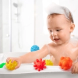 Den praktiske udførelse uden huller sikrer, at der ikke kommer vand ind – boldene er derfor hygiejniske, lette at rengøre og perfekte også til badet. Sættet med otte forskellige bolde tilbyder et bredt udvalg af teksturer til endeløs leg, afslappende massage af håndflader eller fodsåler og blide øvelser.