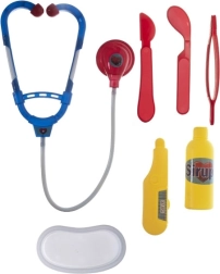 Dette plastiske lægesæt er ideelt til små sundhedshjælpere, der vil hjælpe og behandle. Det indeholder en række tilbehør, som gør legen mere realistisk og sjov. Den robuste plastkvalitet sikrer sikker og holdbar brug.