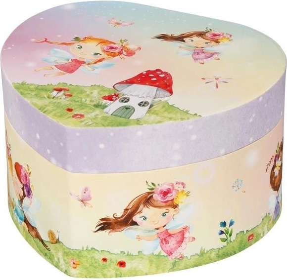 Elegant spille-smykkeskrin med fe-motiv, som vil glæde enhver lille pyntedukke. Når låget åbnes, spiller melodien Svanesøen, og feen begynder at danse foran det hjerteformede spejl. Ideelt til sikker opbevaring af børnesmykker og småting, samt en smuk dekoration til børneværelset.