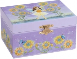 Dette smykkeskrin i stil med en klassisk spilledåse vil glæde ethvert barn, der ønsker at opbevare sine skatte med elegance. Når låget åbnes, lyder den blide melodi fra operaen Svanesøen, og en lille roterende ballerina danser foran det indbyggede spejl. Solsikke-motivet giver smykkeskrinet et legende og samtidig fint udtryk.