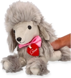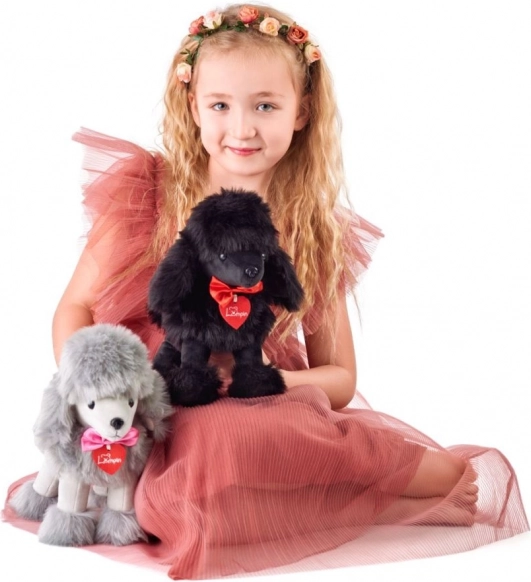 Pudlen Lily har ultrablød plys, fluffy partier og broderede øjne og næse – sikkert og behageligt for de allermindste.