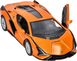 En stilfuld metalmodel af Lamborghini Sian, der giver masser af sjov for både børn og samlere. Den har åbne døre, pull-back svinghjulstræk og gummihjul for bedre køreegenskaber. Fås i fire farver – oliven, rød, turkis og orange.