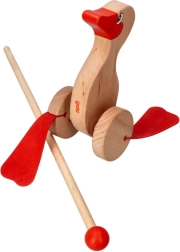 Denne smukke træand er designet til børn fra 1 år og er den ideelle ledsager til deres første skridt. Med en glat overflade og robust konstruktion er den sikker og attraktiv for de mindste. Det bedste valg til udvikling af bevægelsesfærdigheder og leg.