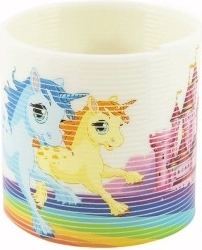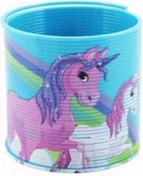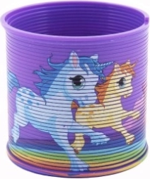 Denne farverige spiral-fjeder med søde enhjørninge er en klassiker, der aldrig bliver kedelig. Den er let at strække, bevæger sig flydende og er takket være plast af høj kvalitet sikker til daglig leg. Perfekt til underholdning derhjemme, på farten og til børnefødselsdage.