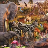 Opdag Afrikas farverige og mangfoldige fauna, når du samler dette smukke puslespil, som viser et væld af dyr, der kalder dette kontinent deres hjem. Fra majestætiske elefanter til yndefulde giraffer og vilde løver – hver brik indfanger præcist skønheden og essensen af disse skabninger i deres naturlige omgivelser.