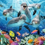 En realistisk undervandsscene med delfiner og farverige fisk bringer klare farver og detaljeret udførelse, som tager sig godt ud både på væggen og på bordet.