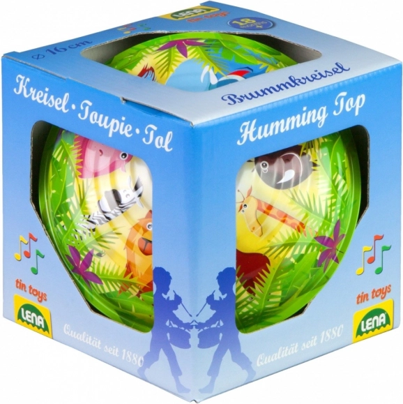 Oplev klassisk leg i en moderne udgave: en metal-snurretop med junglemotiv fra LENA med en diameter på 16 cm. Takket være nem igangsætning og en stabil sugekop snurrer den sikkert på stedet, udvikler motorik, hånd–øje-koordination og giver børn fra 18 måneder masser af glæde. Leveres i en gaveæske med produktinformation.