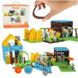 Tag med på en bondegård! Sættet indeholder komponenter til at skabe din egen gård, inklusive en traktor med trailer og figurer af landmænd med dyr som hest, ko og høne. Børn lærer om livet på landet, udvikler deres fantasi og motoriske færdigheder.