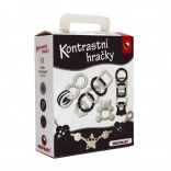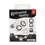 Gavesæt med kontrastlegetøj i elegant sort-hvid kombination til babyer fra 0 måneder. Understøtter udvikling af syn, finmotorik og beroliger ved tandfrembrud. Indeholder sikre, lette at gribe elementer uden skarpe kanter og små dele. Synsstimulering, ergonomiske former, sikre materialer, rangle og bidering i én praktisk pakke.