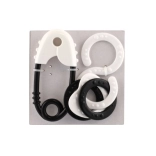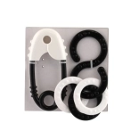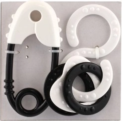 Dette sæt af rasler inkluderer en klassisk sikkerhedsnål og en otte-tals form med ringe.