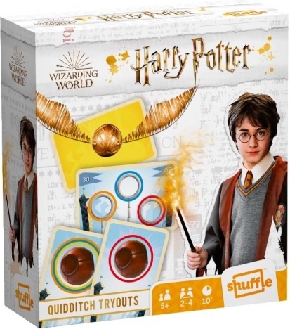 Træd ind på Quidditch-banen og bliv kollegiernes mester! I det tempofyldte Quidditch Tryouts fra Shuffle lægger du dine kort på ringkortene, reagerer lynhurtigt på farver og forsøger at overliste modstanderne. Når alle ringkort er spillet, vinder spilleren med højeste score – måske en ny stjerne for Gryffindor!