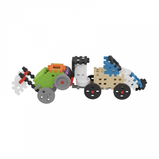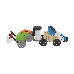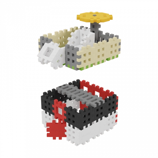 Med tandhjul og roterende forbindelser opstår funktionsdygtige modeller – helikoptere, fly og køretøjer. Børn lærer naturligt principperne for bevægelse og gearudveksling.