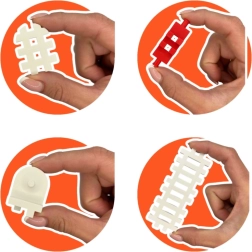 Stort byggesæt til børn fra 4 år med 301 dele i 27 former udvikler fantasi, logik og finmotorik. Takket være specialelementer kan du bygge bevægelige mekanismer, køretøjer og bygninger. De bløde dele af genanvendt TPE ligger godt i hånden, er sikre uden BPA og ftalater og opfylder standarden EN 71. Sættet indeholder trin-for-trin-vejledning og en praktisk opbevaringspose. Ideelt til STEAM-læring gennem leg.