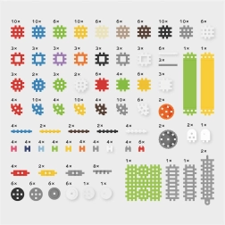 Hele 301 dele i 27 former – fra grundklodser over forbindelser til specialelementer. Byg huse, biler, maskiner og originale konstruktioner og udvikl fantasien hver dag.
