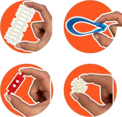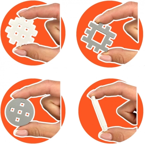 Det sikre, behagelige og let fleksible materiale føles komfortabelt at røre ved og tåler leg hver dag. Byggesættet leveres i en solid papæske, indeholder en vejledning til første inspiration samt en speciel pose til opvaskemaskine, så klodserne altid er rene. Perfekt til både selvstændig og fælles leg.