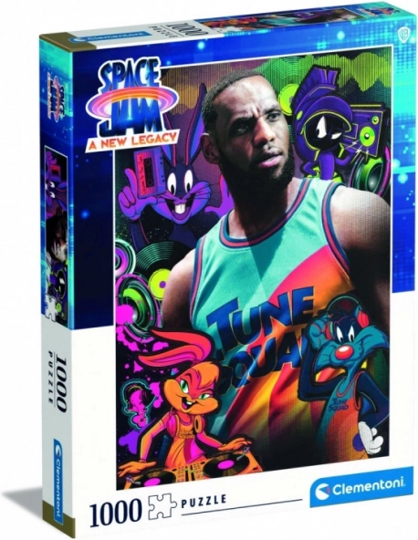 Puslespil Space Jam 2 fra Clementoni, 1000 brikker, byder på sjov og miljøvenlighed, ideelt til filmfans.