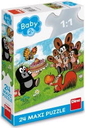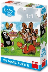 Krtek Fødselsdag maxi-puslespil er den ideelle ledsager for små opdagere. Børn fra 2 år og opefter vil elske at samle 24 store, ufarlige brikker, der danner et fantastisk billede med Muldvarpen og hans venner. Dette farverige puslespil stimulerer barnets fantasi og finmotorik.
