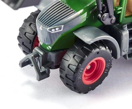 Kompakt højvolumentraktor til arbejde på marken og på gården. Fendt 1050 Vario er stjernen i 1000-serien. Som årets traktor og prisvinder for design kan denne kompakte højvolumentraktor især bevise sin alsidighed takket være frontlæsseren. Uanset om det er på marken eller på gården, har Fendt med 517 hk masser af kraft under motorhjelmen. Fra Siku har den fået en mobil frontlæsser og en mobil skovl. Fendt med gummibelagte dæk og hjul med kraftigt mønster gør også stort indtryk på børneværelset. Aftagelig kabine og træk til trailer lover sjov og variation.