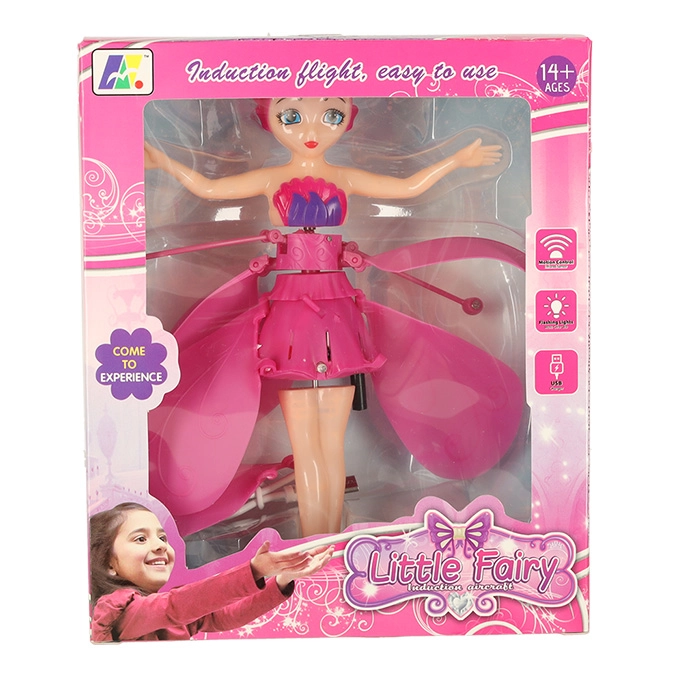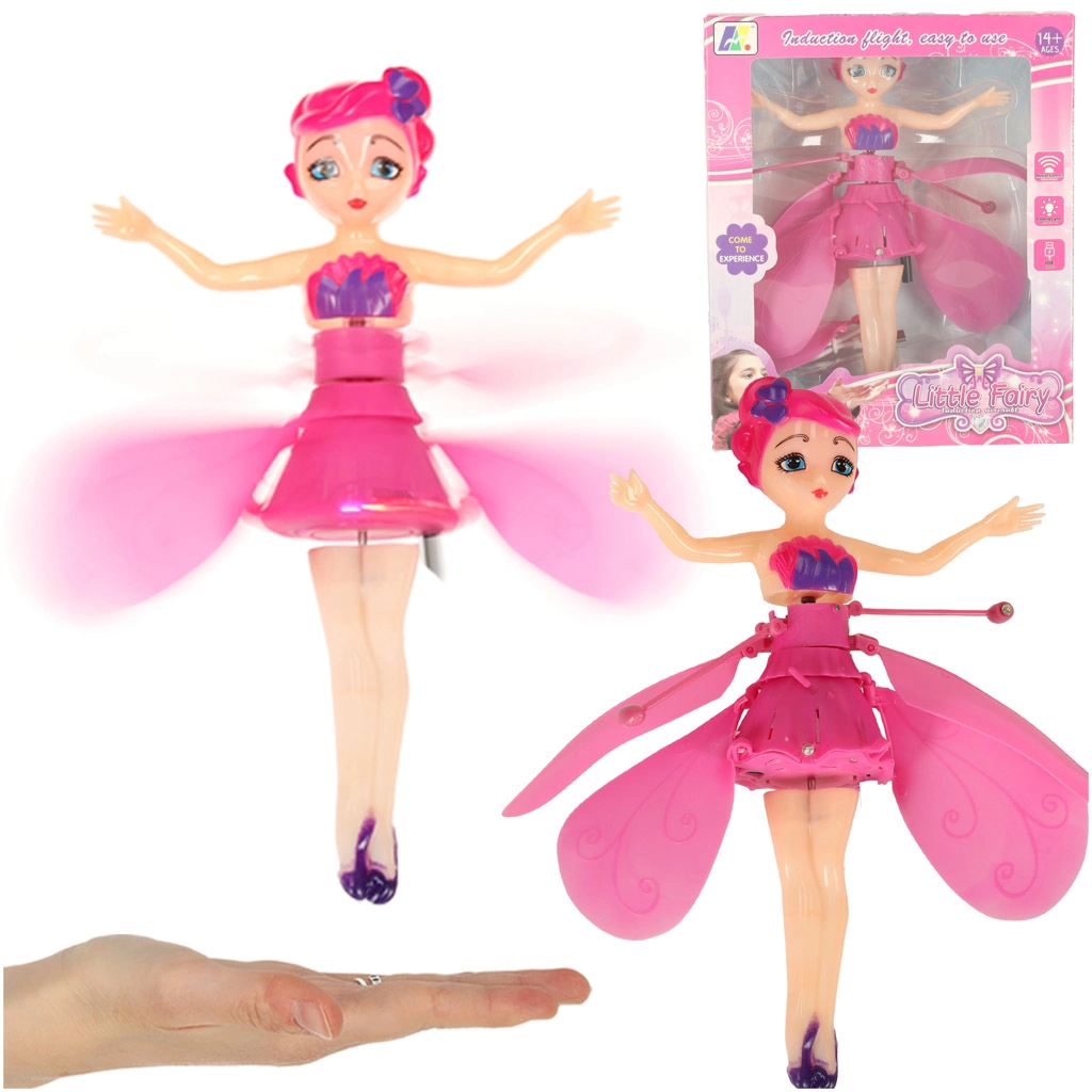 Opfyld børns drøm om en magisk ven. Når du tænder knappen på kjolen, begynder vingerne at rotere, og feen letter af sig selv. Med en håndbevægelse under sensoren guider du den let højere eller lavere – responsen er jævn og intuitiv.