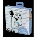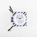 Den dobbeltsidede sanselige bog fra GAGAGU med tiger-motiv til alder 0+ stimulerer babyens syn, berøring og hørelse. Den byder på høj kontrast i sort-hvide mønstre, broderede elementer med forskellige teksturer til små fingre, knitrende flapper og den sjove leg “peek‑a‑boo”. Perfekt til de første opdagelser af former, farver og dyr.