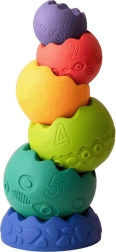 Delene kan stables til et tårn, sættes ind i hinanden og bruges til de første regneøvelser. Visuelle og taktile stimuli understøtter naturligt udviklingen af kognitive færdigheder.