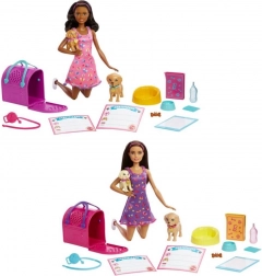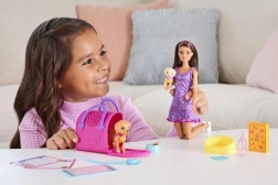 Sjovt sæt Barbie Pleje af hundehvalpe opfordrer til pleje og omsorg for dyr. Indeholder dukke Barbie, to hundehvalpe og tilbehør med farveskift funktion.