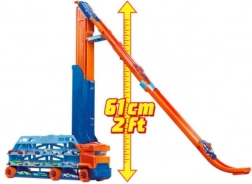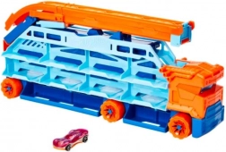 Oplev dobbelt så meget action med transportøren, der bliver til en tyngdekraftsbane! Det store køretøj på seks kraftige hjul transporterer og opbevarer hele samlingen sikkert, og med ét enkelt trin forvandler du det til en 60 cm nedkørsel til adrenalinfyldte løb.