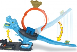 Affyr bilen fra politistationen, sus gennem det lodrette loop, og sigt mod kollisionszonen direkte mod T‑Rex. Når den falder, skifter øjnene til symbolet X – en klar sejr for små helte. Sættet leverer hurtig action, stunts og spændende scenarier fra Hot Wheels‑byen.