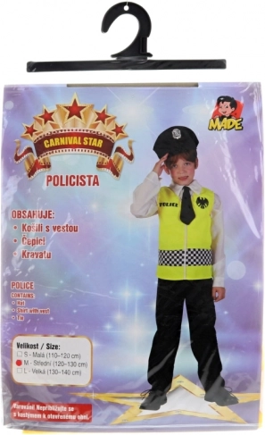 Børnekostume politibetjent til højde 120–130 cm. Realistisk udseende, behagelig pasform, ideelt til karneval og skolearrangementer. Til børn 5–9 år.