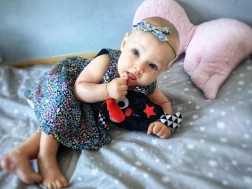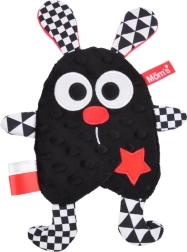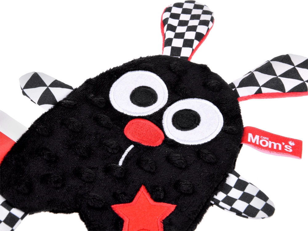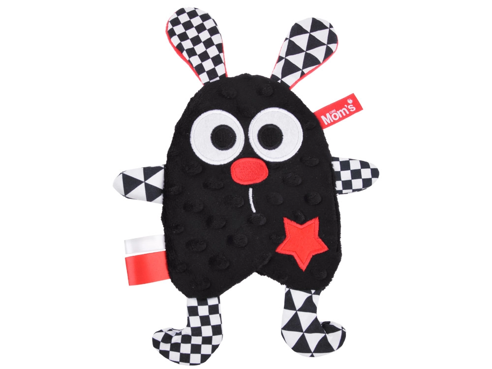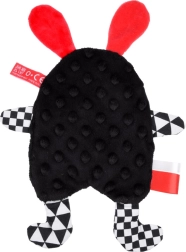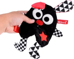 En yndig kontrastfyldt knitreven, syet af bløde materialer og designet med tanke på spædbørn. Ideel som den allerførste legetøj fra de første levedage. Forskellige materialestrukturer og sort-hvid-røde farver sammen med geometriske mønstre stimulerer barnets sanser og syn.