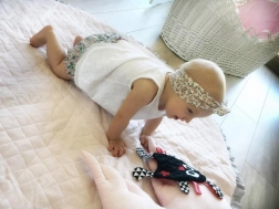 - Det lette legetøj er fyldt med knitrefolie, som ved berøring udsender lyde, der minder om dem i mors mave, hvilket virker beroligende på babyen.