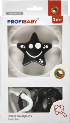 Støt din babys naturlige udvikling med et sort/hvidt ranglesæt, der stimulerer hørelse, syn og berøring. Kombinationen af barnevognskæde og en let rangle formet som stjerne eller blomst giver underholdning og meningsfuld stimulation. Kontrastmotiver fanger spædbørns opmærksomhed, og den blide raslen opfordrer til interaktion.