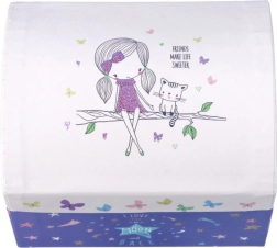 Denne musikboks er dekoreret med vennemotiver og er derfor en fantastisk gave til alle, der værdsætter smukke relationer.